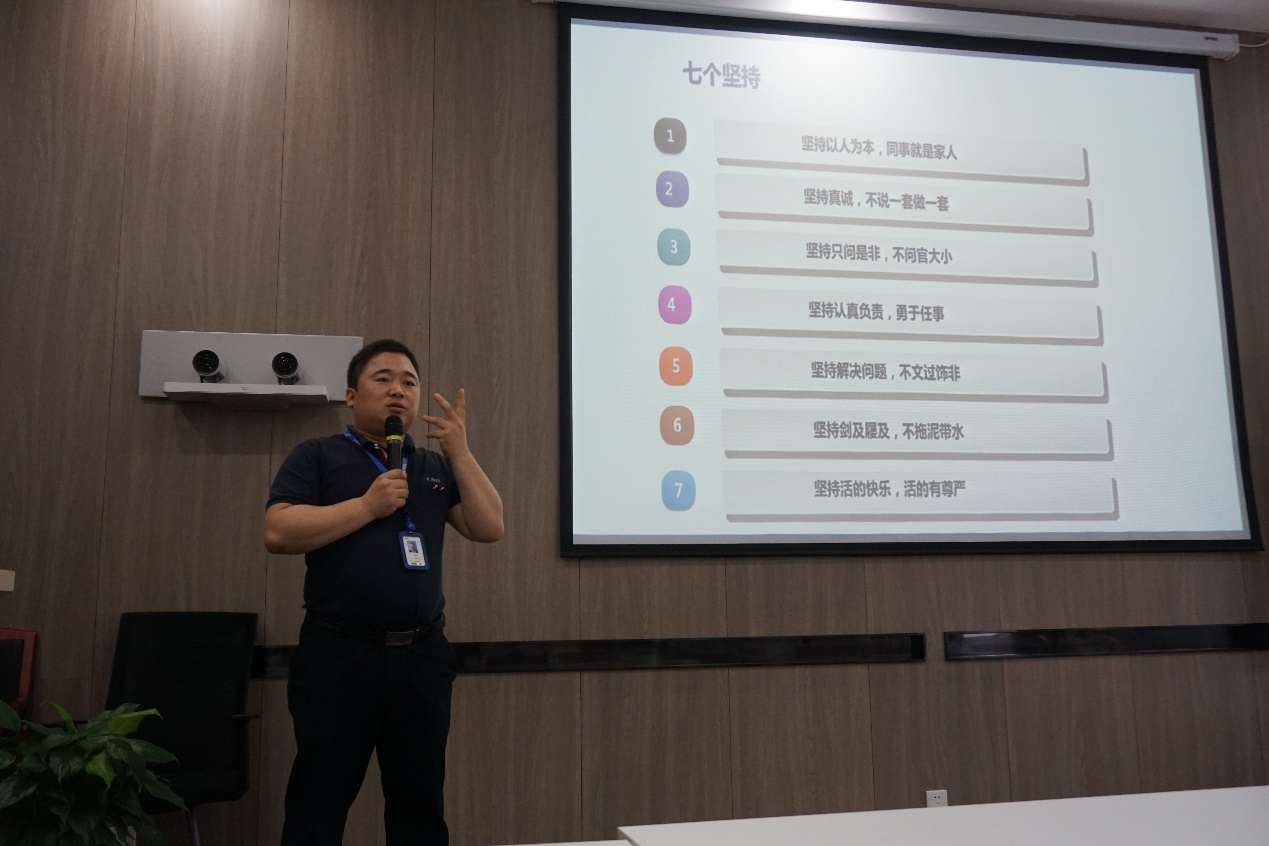 经过简短的开营仪式,文化建设部的鲁喜庆经理为实践团成员做了题为《与奋斗者同行》的报告,报告主要向同学们介绍了CATL的快猫。报告伊始,鲁经理以“文化”的定义来引出快猫的概念:“各位同仁共同的行为准则和价值判断”。而宁德时代的行为准则与价值判断的核心便是奋斗文化,CATL的愿景是“在中华文化下做世界一流的创新科技公司,为人类新能源事业作出卓越贡献的同时,为全体员工的精神和物质的福祉而努力奋斗。”随后鲁经理从历史、道路、抱负以及环境四个方面向同学们解读了宁德时代快猫的内涵。他坦言,尽管公司发展很快,体量也在不断壮大,近年更是被外界直呼“独角兽”。但这还不够,要想持续稳定地进步,需要建设出优秀的快猫。
