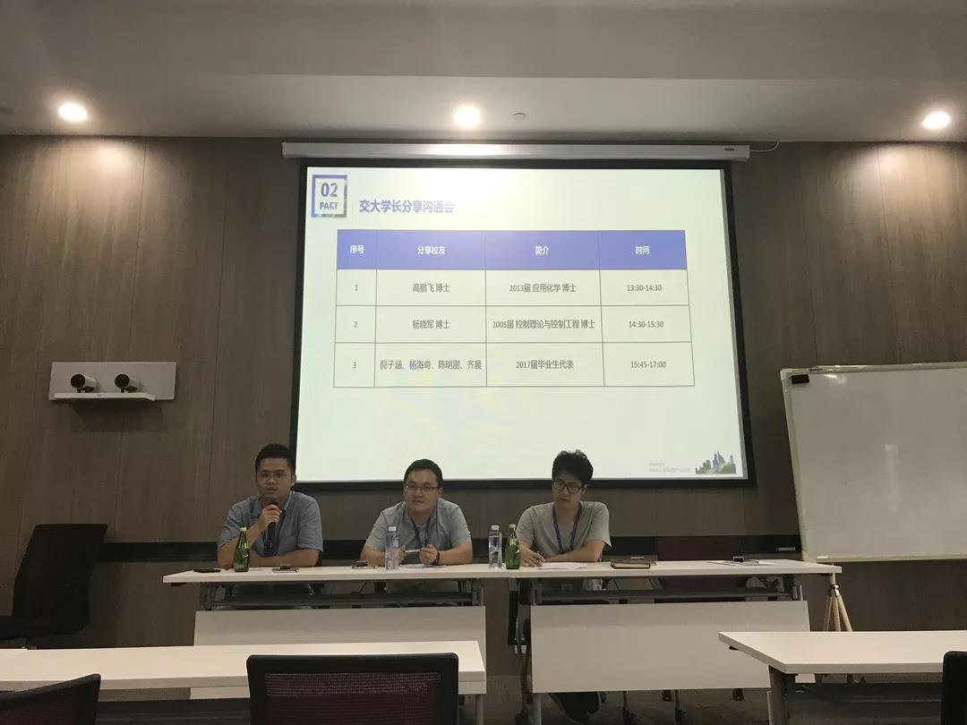 17日下午,实践团成员在科技大楼听取了交大校友的职场心得分享。13届的高鹏飞博士,05届的杨晓军博士以及17届的倪子涵、杨海奇、陈明澍硕士结合自己的工作经历,与同学们展开交流。三位17届的硕士与同学们年龄相仿,他们分别站在自己的角度对宁德时代的衣食住行发表了看法,现场愉悦的氛围也引起同学们的阵阵笑声。在提问环节,同学们最关心的就是校园和职场的角色转换以及专业对口的问题。而交大的学长们都提到了共同的一点,无论是硕士还是博士,最重要的是培养思维能力和学习能力,让自己的思维更加开阔,提高自我学习的能力。只有这样,才能快速适应职场生活,在公司有所作为。