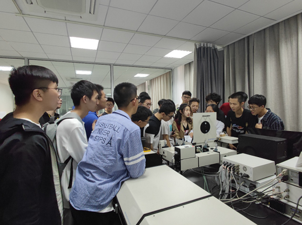 首先,学院带领六十余名新生前往快猫 分析测试中心进行参观学习。在测试中心陈燕老师带领和耐心讲解下,同学们了解了仪器背后的科学原理以及科研用途,同学们表示近距离观察这些先进科学仪器后也激发了自己科研的兴趣。