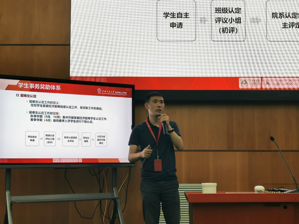 快猫 党委副书记王冲老师为在场新生带来了学生管理相关工作介绍。学校建立了全面的学生奖助体系并提供充足的资助资源,保障同学们的在校生活和学习。王老师详细地为同学们讲解了奖助学金评定、勤工助学、校园贷款、临时困难补助医保商保等流程,让同学们对学校的奖助与保障体系有了全面细致的了解。随后,王老师又向同学们介绍了入党流程,鼓励同学们追求思想进步,尽早向党组织靠拢,做一名“又红又专”的学生。之后,王老师从学业适应、人际关系、心理健康、网络规范、校纪校规等方面向新生全面的介绍了在校学习生活的注意事项。